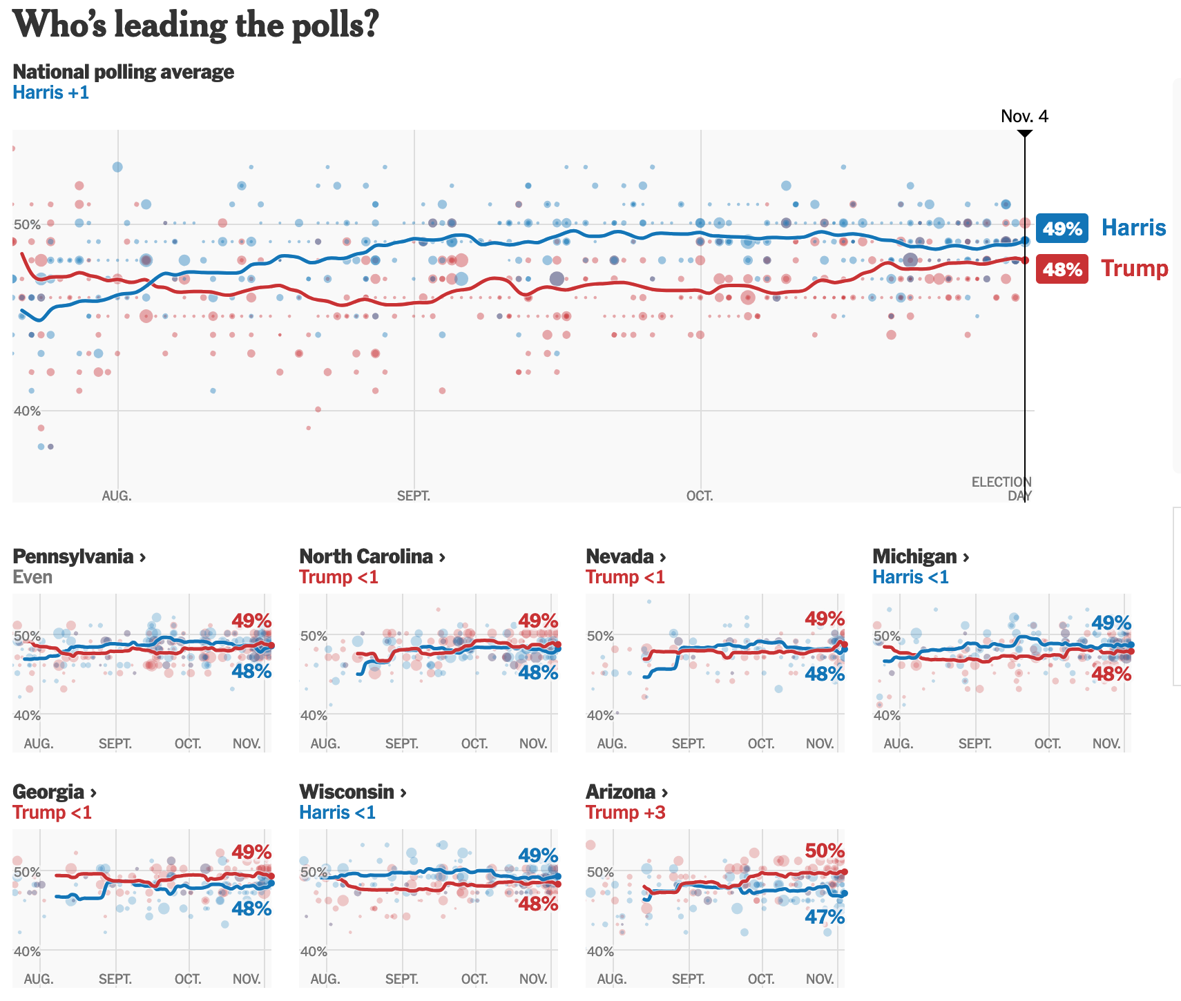 And Trump over-performs by 4 points as a rule on election day, which bodes ill for Democrats. New York Times Polls below