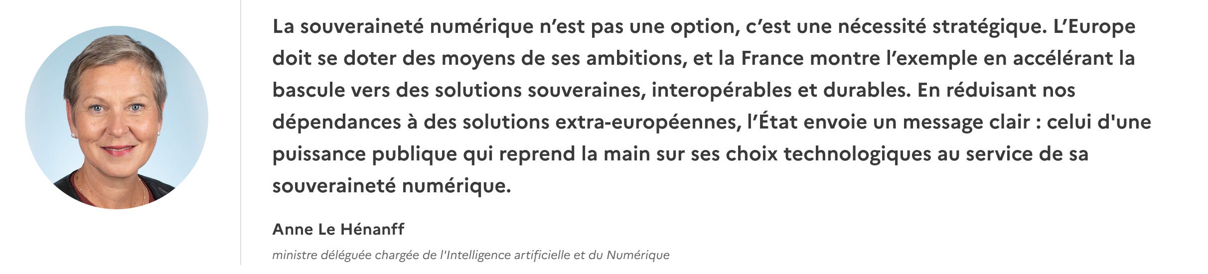 “Digital sovereignty is not an option; it is a strategic necessity. Europe must match its resources to its ambitions, and France is leading by example by accelerating the shift toward sovereign, interoperable, and sustainable solutions. By reducing our reliance on non-European technology, the State is sending a clear message: the government is reclaiming control over its technological choices to secure its digital sovereignty.”—Anne Le Hénanff