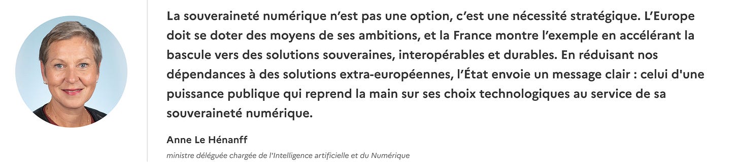 The press release was issued by David Amiel (Minister of Public Action and Accounts) and Anne Le Hénanff (Minister Delegate for AI and Digital Affairs), coordinating through DINUM, Direction interministérielle du numérique (the Interministerial Digital Directorate.) Officially, “DINUM is responsible for developing and overseeing the government’s digital strategy. It manages digital projects to advance national priorities and improve the efficiency of public administration.”