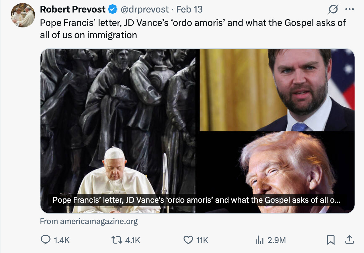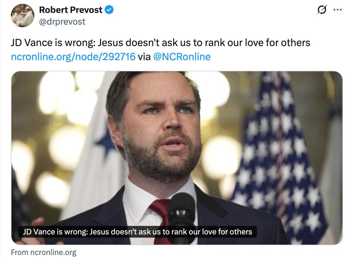 This has cause many of the very-online MAGA supporters to allege that Pope Leo XIV is a “progressive” who will be a “disaster” for Christianity. What is meant by “progressive” is anyone’s guess, but more to the point, it heralds a shift in the US political culture wars and perhaps the beginning of a more clear and present religious conflict. To many, MAGA-Catholicism is the new Americanist controversy which Leo XIII confronted. Once the name was announced, I thought of Leo XIII as the Pope who combated socialism, unrestrained corporation-centered capitalism, and told US Catholics to cool it with conformity to the majority culture. Leo XIV is an aggressive name. This will be a historic pontificate. He has also hinted that he is not Pope Francis in significant ways. That is actually the bigger threat to the current preferences of the US right under Trump-Vance.